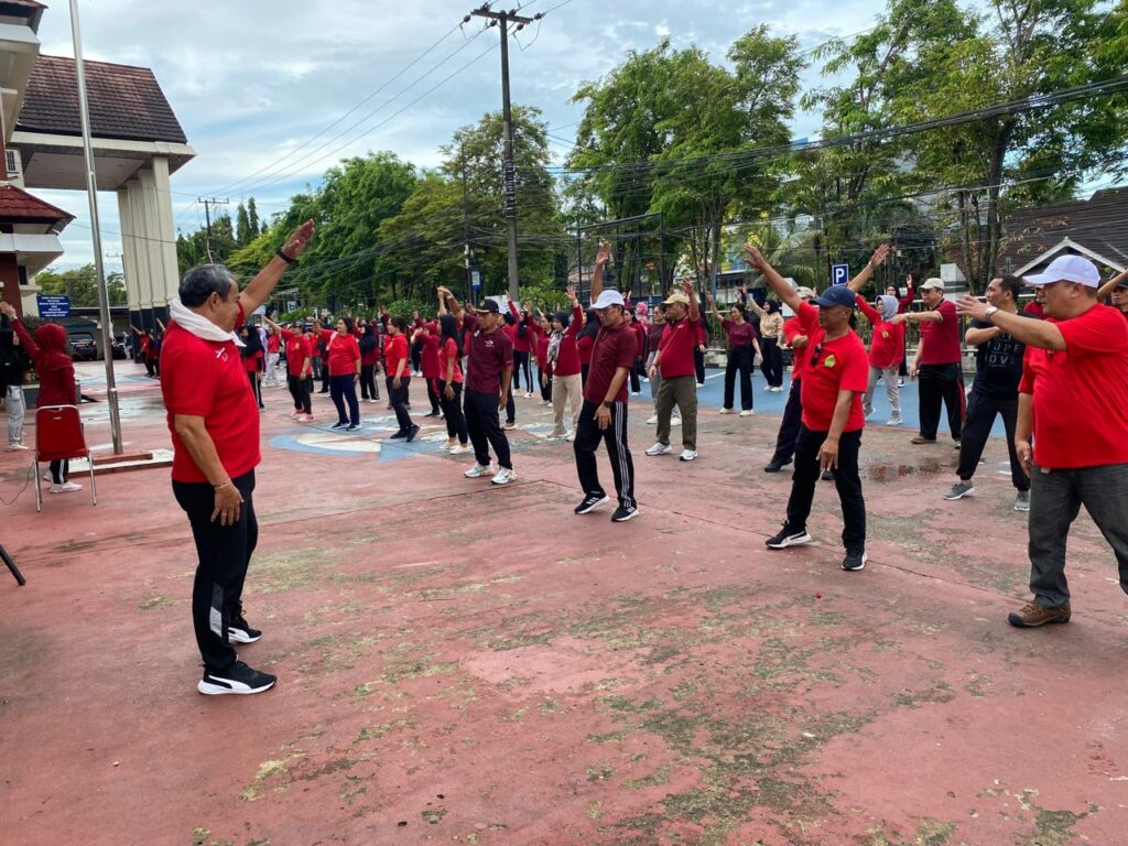 Samarinda,17 Januari 2025 bertempat pada halaman Pengadilan Negeri Samarinda. Pengadilan Tinggi Kalimantan Timur melaksanakan Senam Bersama dengan Seluruh Aparatur Pengadilan Negeri Samarinda. Senam Jantung Sehat bersama ini langsung di Instrukturkan Oleh Y.M Ketua Pengadilan Tinggi Kalimantan Timur Bapak Nyoman Gede Wirya S.H.,M.H. Senam bersama ini bertujuan agar seluruh Aparatur Pengadilan Tinggi maupun Pengadilan Negeri Samarinda memiliki jiwa dan raga yang sehat sehingga selalu dapat memberikan pelayanan yang baik dan berintegritas.