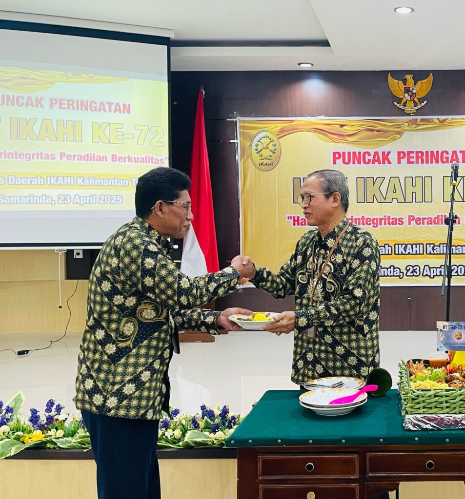Samarinda, 23 April 2025 – Pengadilan Tinggi Kalimantan Timur menggelar peringatan Hari Ulang Tahun (HUT) ke-72 Ikatan Hakim Indonesia (IKAHI) di Ruang Sidang I dengan mengusung tema “Hakim Berintegritas, Peradilan Berkualitas”. Acara ini berlangsung khidmat dan penuh semangat kekeluargaan.