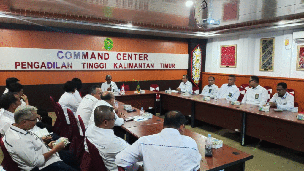 Samarinda,Senin 29 September 2025. Pengadilan Tinggi Kalimantan Timur bertempat di Ruang Command Center mengadakan Rapat Kordinasi yang dipimpin oleh Y.M Ketua Pengadilan Tinggi Kalimantan Timur Bapak Suwidya,S.H.LL.M yang dihadiri oleh Hakim Tinggi dan beserta Ketua Pengadilan Negeri Se-Wilayah Hukum Pengadilan Tinggi Kalimantan Timur. rapat kordinasi ini diadakan merupakan terusan rapat kordinasi KPT bersama Dirjen Badilum sebelumnya. Pada Rapat kordinasi ini Pimpinan Pengadilan Tinggi Kalimantan Timur berpesan bahwa para ketua pengadilan negeri harus memberikan contoh sebagai role model di satuan kerja masing-masing. serta mengawasi dan membina para hakim-hakim baru agar selalu mengedapankan integritas dan putusan yang berkualitas.