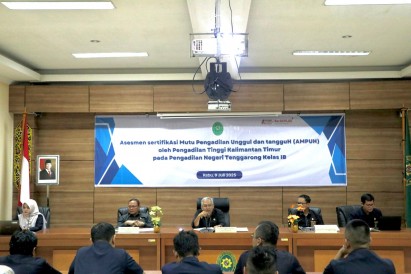 Samarinda,(09/07) Pengadilan Tinggi Kalimantan Timur melakukan assesmen untuk SERTIFIKASI MUTU PENGADILAN UNGGUL DAN TANGGUH (AMPUH) pada Pengadilan Negeri Tenggarong. Assesmen ini dilakukan secara luring sesuai dengan SK DJU Nomor 916/SK.OT1.6/III/2025 tentang PERUBAHAN PERTAMA PEDOMAN SERTIFIKASI MUTU PENGADILAN UNGGUL DAN TANGGUH (AMPUH) DI LINGKUNGAN PERADILAN UMUM. kegiatan ini dilakukan secara Luring tanpa dibebankan ke DIPA Pengadilan Tinggi sesuai dengan arahan nasional dalam efisiensi dalam pengelolaan Anggaran Belanja Perjalanan Dinas. Tim dari Pengadilan Tinggi Kalimantan Timur terdiri dari Lead Assesor Y.M Bapak Dedy Fardiman,S.H.,M.H Y.M. Irfanudin,S.H.,M.H Selaku Assesor bersama Hendro A.F SilitonggaS.Si dan Akid Danardi,S.E sebagai Sekretaris TIM